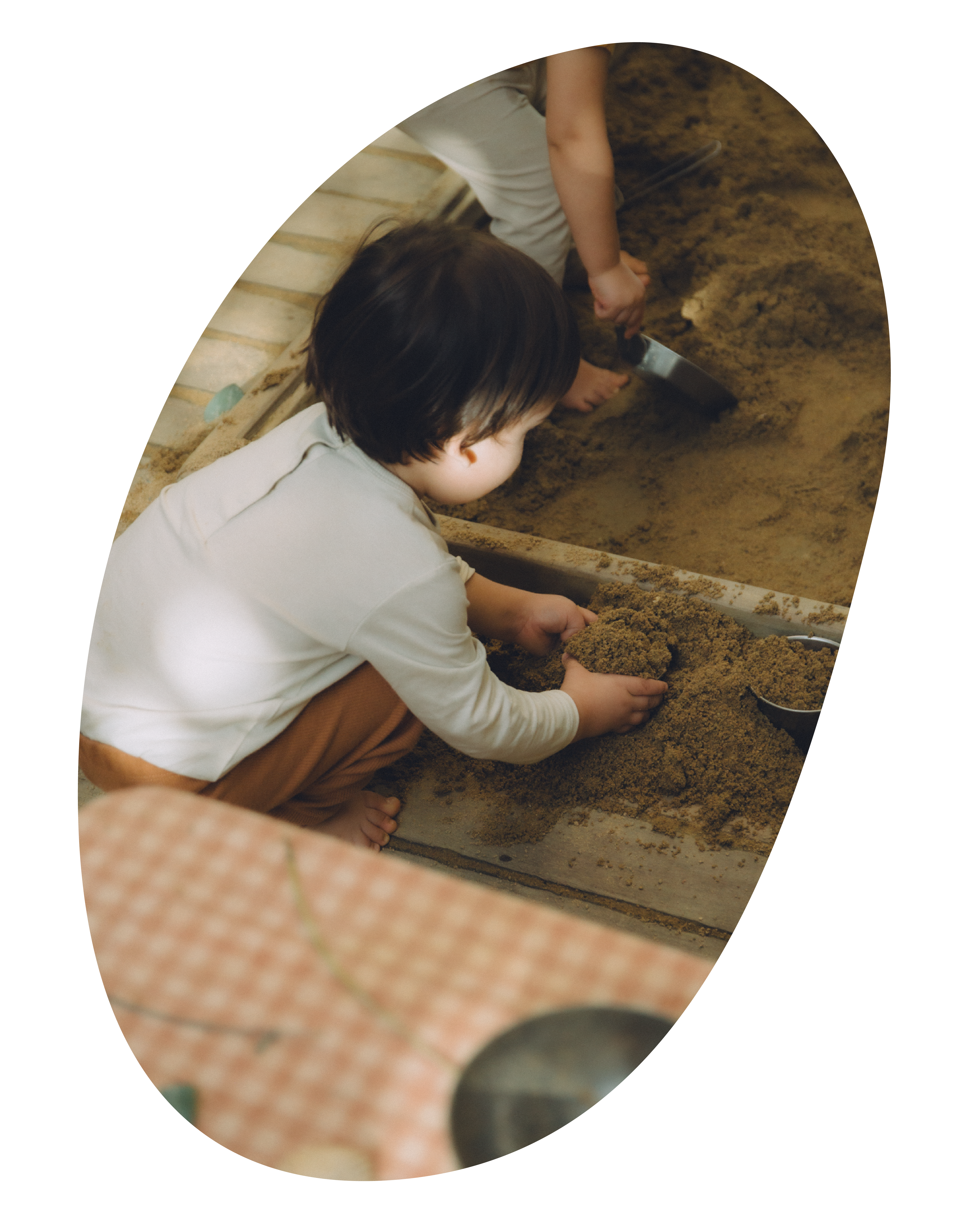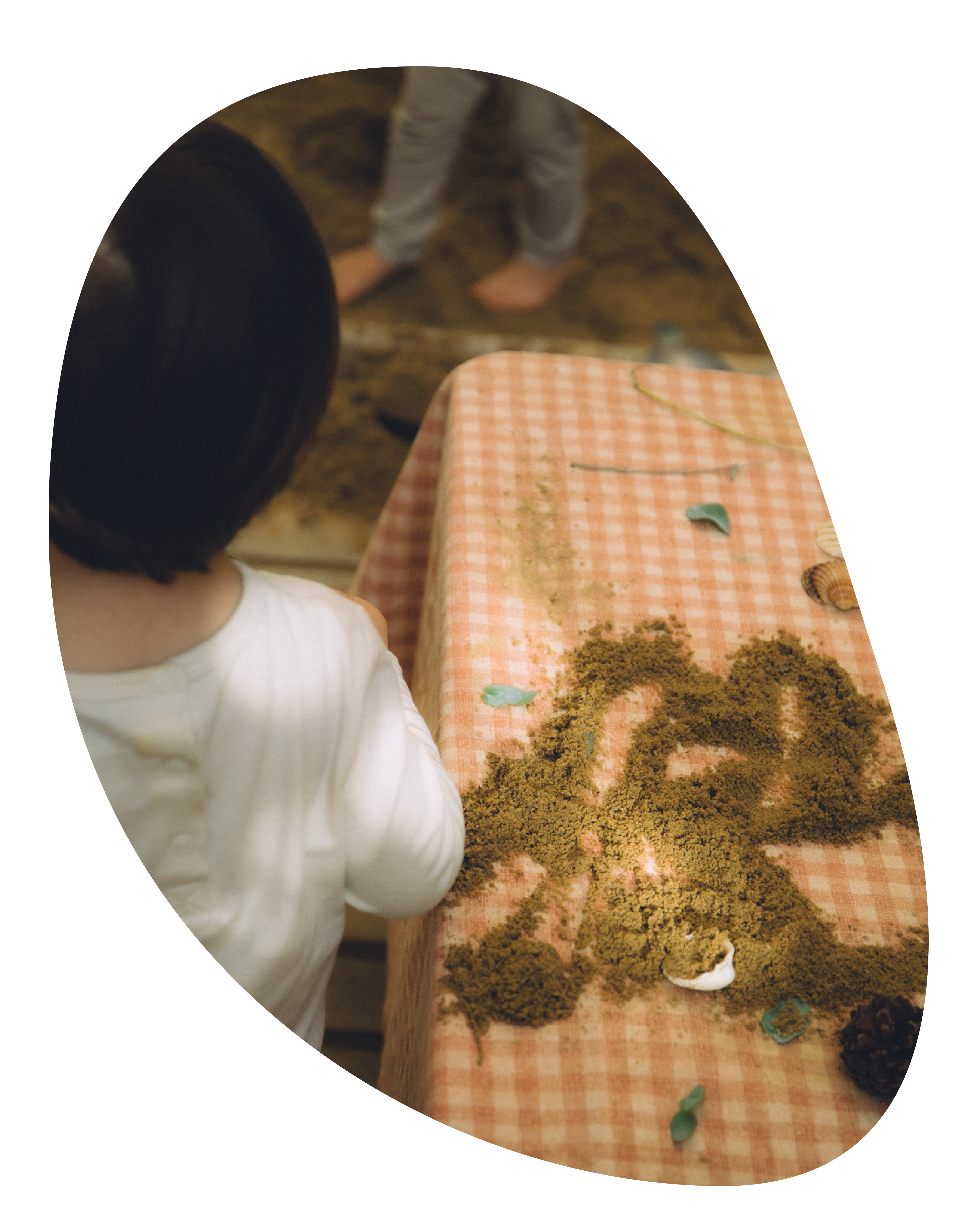 Exploraciones que despiertan los sentidos a través de materiales definidos "pobres", humildes pero tan exquisitos y gustosos cómo arena, piedras, conchas, ramas, agua, flores secas, tierra.